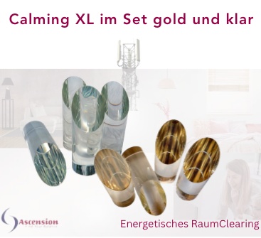 On the other hand, it is equally important to keep our environment—our apartment, our house, our workplace, etc.—energetically pure and protected, and to create spaces for “recharging” and healing. The sets of four Calmings XL clear and gold are the ideal purifier of harmful vibrational energies, electrosmog, low-vibrational environments, and other forms of radiation exposure. >> more info