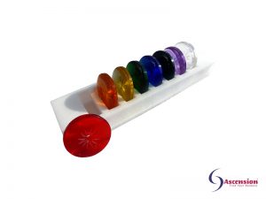 The Chakra set can be used daily after work or during meditation. Wheels can be placed directly on the body chakra points, according to their colour, or all together in the white foam box on the solar plexus.